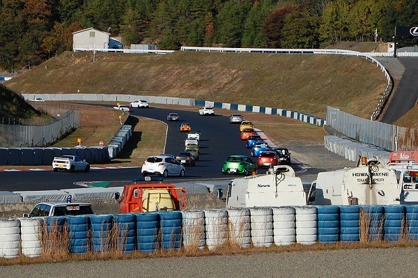 さまざまなオーナーズクラブが集まってのパレードラン。今から50年以上前に生産されたコスモスポーツを先頭にレーシングコースを1周しました。