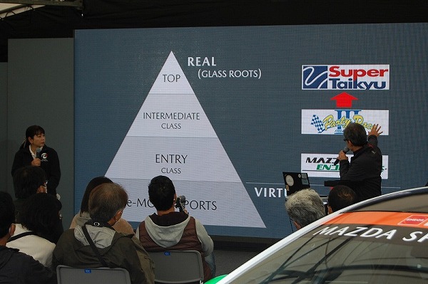 e-スポーツなどバーチャルからリアルレースへ、ナンバー付で参加できるマツダグラスルーツカテゴリーからスーパー耐久へのステップアップへのチャレンジプログラムが発表されました。マツダ車は誰もがナンバー付で参加できるグラスルーツレースで世界シェアがナンバー1だそうです。今回は、e-スポーツへのバックアップだけでなく、マツダグラスルーツカテゴリー(パーティーレースやロードスターカップ)での上位成績者のスーパー耐久レースへのステップアップをサポートするチャレンジプログラムが発表されました。