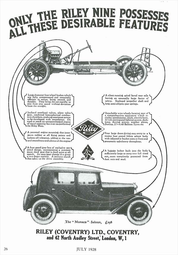 ライレーモナコの広告(1928年) 《「ADVERTIZING RILEY 1906-1968」より》