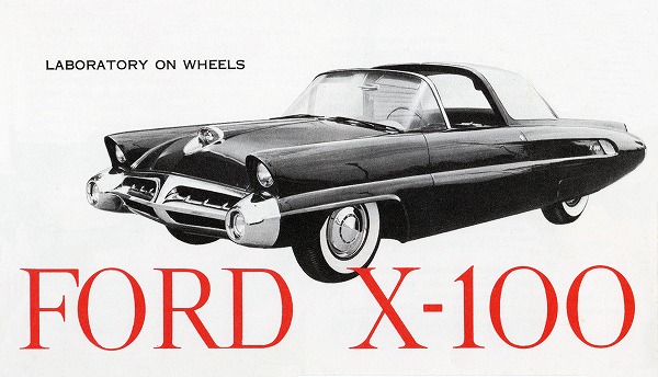 上の3点は1954年に登場したフォードX-100。このモデルは1953年の秋も終わるころ、英国とフランスで最初に紹介された。当時はスタイリングモデルで名前も「フォード195X」と呼ばれており、その後、50を超える新しい試みが織り込まれた実験車として仕立てられて「フォードX-100」となった。新しいリンカーンコンチネンタルのプロトタイプではないかと噂されていたが、それは違うし、量産の予定もないと広報資料ではっきり否定している。