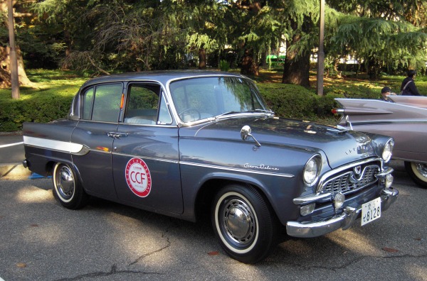 トヨタ博物館所蔵の1960年クラウン。パレードの先導車を務めた、1955年に登場した初代クラウンの改良型。1955年にクラウンが登場したとき、ああ、日本もやっとこんなクルマが造れるようになったんだと感激したのを覚えている。わが国の乗用車らしい乗用車の元祖と言えよう。