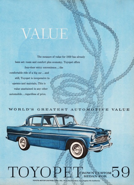 トヨペットクラウンはアメリカにも輸出され、これは1959年の広告。