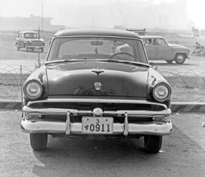 1957年はモデルチェンジの年で、ホイールベースの違う2つのシリーズとなった。上級シリーズは118インチで「フェアレーン500」と「フェアレーン」、下級シリーズは116インチで「カスタム300」と「カスタム」の4種だった。エンジンは直列6気筒OHV 223cu.in(3653cc) 144hp/4200rpmとV8 OHV 272cu.in(4455cc) 190hp/4500rpmの2種があり、各モデルが選択可能であった。1956年のクライスラーから目立ち始めた「テールフィン」競争は、57年にはかなりの存在感を持った流行となっており、フォードにもその影響は見られるが他社よりは控えめだった。撮影場所は晴海の貿易センター周辺の駐車場で、毎年の自動車ショーはいつもここで開催されていた。僕はショーの会場に入り前に必ず駐車場を一回りして珍しい車を探して歩いていた。今と違って「公共交通機関をご利用ください」という時代ではなかったからだ。