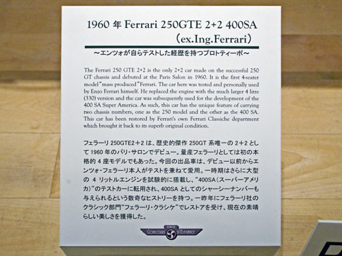 国内のイベントで捉えた「250GTE 2+2」だ。セールの張り紙があったが、残念ながら値段は書いてなかった。