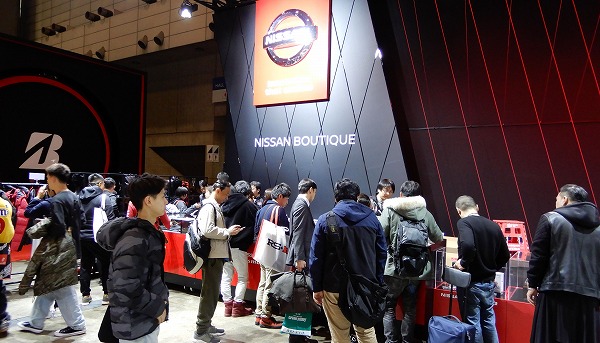 オリジナルグッズを求めるファンたちで大繁盛のNISSAN BOUTIQUE。