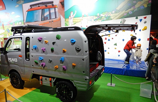 「ハイゼット トラック PEAKS Ver.」の脇では子供たちがボルダリングを楽しんでいた。