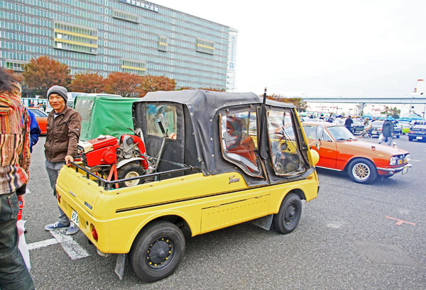 この日のお台場はあまりにも獲物が多く、あちこち歩き回っているうちに皆が帰り始めた。その時見付けたのがこの車で、慌てて駆け付けた。オリジナルの後ろ半分を使ってトレーラーを造るのはヨーロッパの小型車では幾つか見ているが、これは新しく造ったもののようだ。のめり込むのもここまで来ればもう手が付けられませんネ。