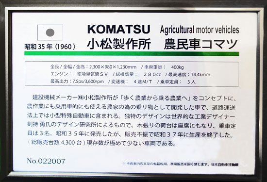 (写真06-1a) 1960 農民車コマツ (2017-10 日本自動車博物館/小松市)