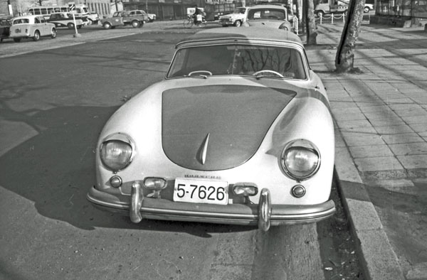 この写真は車を探して官庁街をうろついていた時、突然走って来た大珍車「ポルシェ」をとっさに捉えた傑作だ。当時街を歩くときは常に首からカメラを提げ、何時でもシャッタ―が切れる体制でいたことは確かだが、今考えると可成り変な人に見えていたかもしれない。この時は細かいことは判らなく、「3ナンバー」だから多分「1600」と見当を付けていた。(当時「5ナンバー」は1500cc迄だったから)しかし後年雑誌で見つけた記事で同じナンバーと気付きポルシェ・クラブ会長の車だったことが判り、1957年の「356A 1600 スーパー」と確認できた。