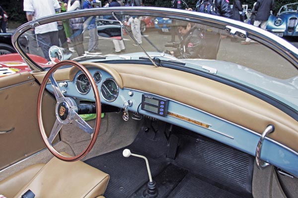 1950年1100cc1種で量産が始まった。ボディはアルミから「鋼製」に変わりエンジンは1086cc 40hpだった。ポルシェの「形式名」は1番(実際は7番) から始まる「設計番号」が当てられる。「356」は試作1号車が356番目だったことを示している。しかしその後次々とニューモデルが誕生し、それぞれに「設計番号」が付けられていくが、同系列の「形式名」は最初の「356」で統一されている。この車の「設計番号」は「369」で既に13番進んでいることが判る。設計番号は1発でその車を特定できる固有番号だから「356-369」とすれば判りやすいが、「356」ではそのような使われ方はなかったようだ。