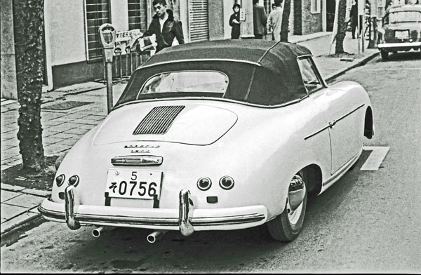 「ポルシェ」が日本人向けに初めて輸入されたのは1953年「三和自動車」によるものだった。カーグラフィック1971年8月号の裏表紙に輸入元の「三和自動車」の広告(参照)があり、それによると「53年春」となっているが、NEKO出版の「心に残る名車シリーズ・13/ポルシェ1980」(P-87) では、当時のメカニック吉岡晶氏は最初の2台は「7月」、続いて「10月」にも2台が上陸したはずと語っている。写真の車はその最初の2台の内赤のカブリオレだ。(もう1台は緑のクーペ)広告に掲載されていた写真の車のナンバーが「5-7626」で、この車と一致したのだ。1953年輸入時(ルビー・レッド)→1960年撮影時(白・前後の茶色は塗装下塗りと思われる)→1979年・京ナンバー(ルビー・レッド)でオリジナルカラーに戻っている。