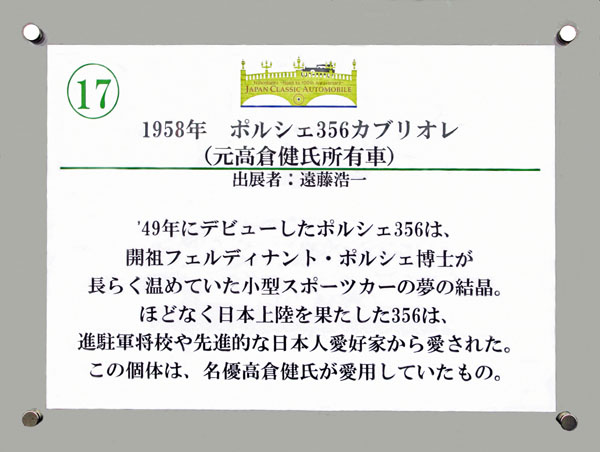 ・ポルシェの正規輸入は1953、54年の8台だけで、以後外貨不足を理由にポルシェを含め外国車の輸入は禁止されており、1961年再開されて時ポルシェは「356B」になっていた。だから「356A」については、2年落ちの米軍々人からの払下げか、後年中古車として輸入されたものが多い。