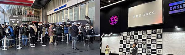 写真解説)秋葉原UDXビルのエントランスには長蛇の列が出来ていた。会場内では初日12月5日11時からセレモニーがスタート!司会は自動車ジャーナリストの竹岡圭さん。2016年のSUBARUのイベントでご一緒したことがある。