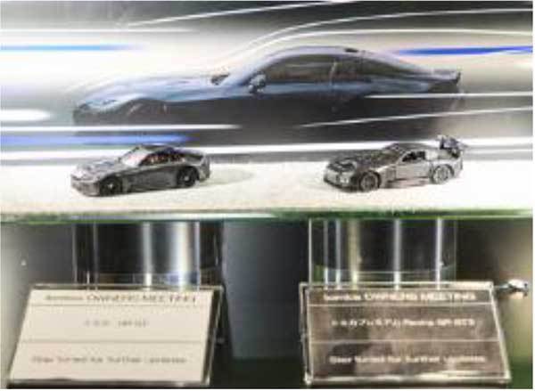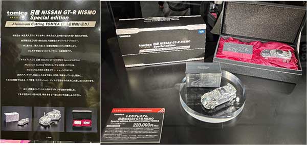 写真解説)ナント!22万円のアルミ製トミカ(NISMO スカイラインGTR)。もはや投資の対象になってきているのか。限定100台で初日に完売。通常トミカと同じようにドアの開閉と、サスペンション機構を備えている。