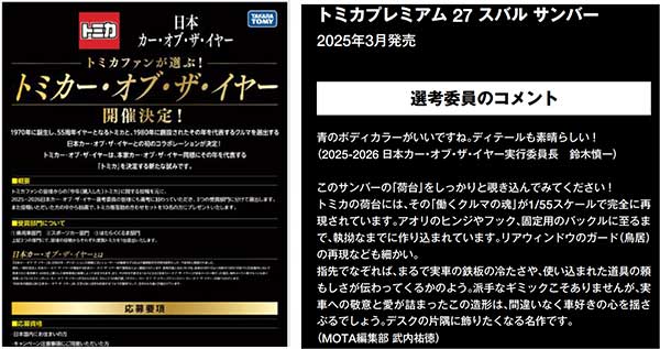 写真解説)トミカー・オブ・ザ・イヤーの告知と結果発表!コメントにもトミカプレミアムのつくり込みの凄さが開設されている。本当に素晴らしい出来栄えである。